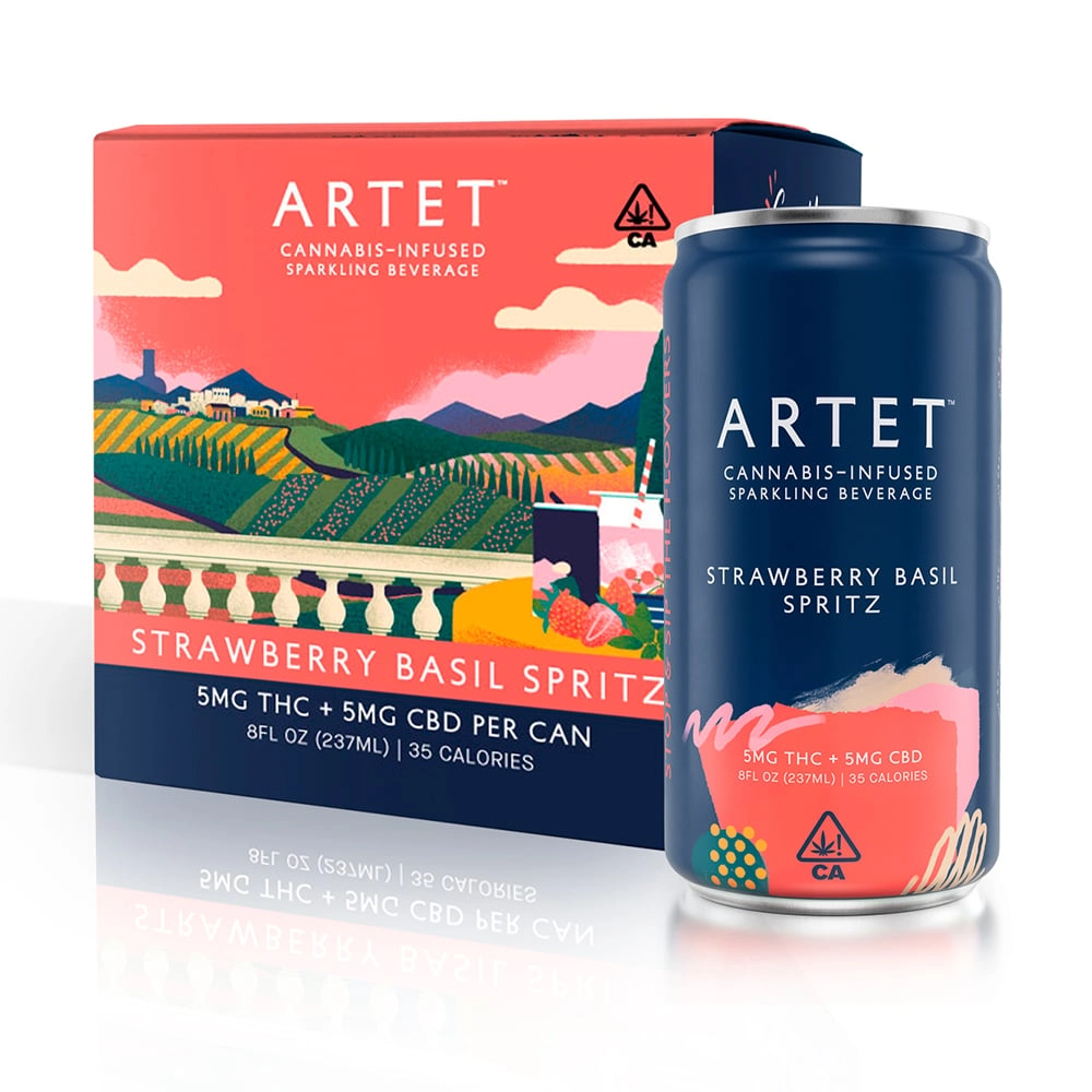 The Strawberry Basil Spritz is your favorite farmstand flavors, infused and canned. It has a rich berry flavor that’s balanced by sweet basil, Artet’s clean botanicals, and a hint of pink peppercorn. Don’t be fooled by the deep red color, this ready to drink cannabis cocktail is only 35 calories per can, with no added sugars, and a dose of THC that’s perfect for socializing and unwinding in equal parts.